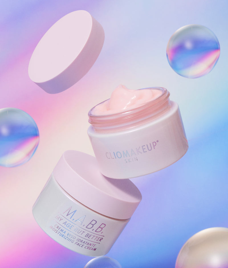 La crema viso idratante M.A.B.B. My Age But Better, formulata nei laboratori ClioMakeUp con il 97% di ingredienti di origine naturale, è un boost di idratazione rapida e profonda, levigante e pro-age.