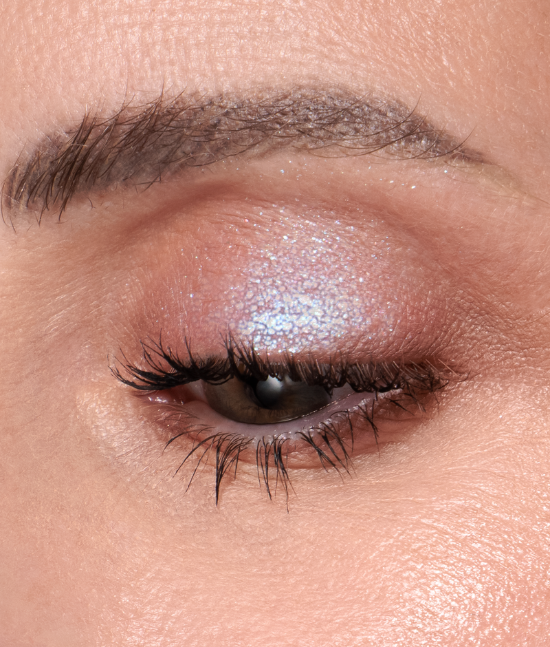 Occhi: per ricreare l’halo eye, sfumare SWEETIELOVE LIQUID ALBA sulla palpebra, concentrandosi nella parte interna ed esterna, e lasciando la parte centrale libera. Applicare al centro SWEETIELOVE SILVER AURORA per donare luminosità.